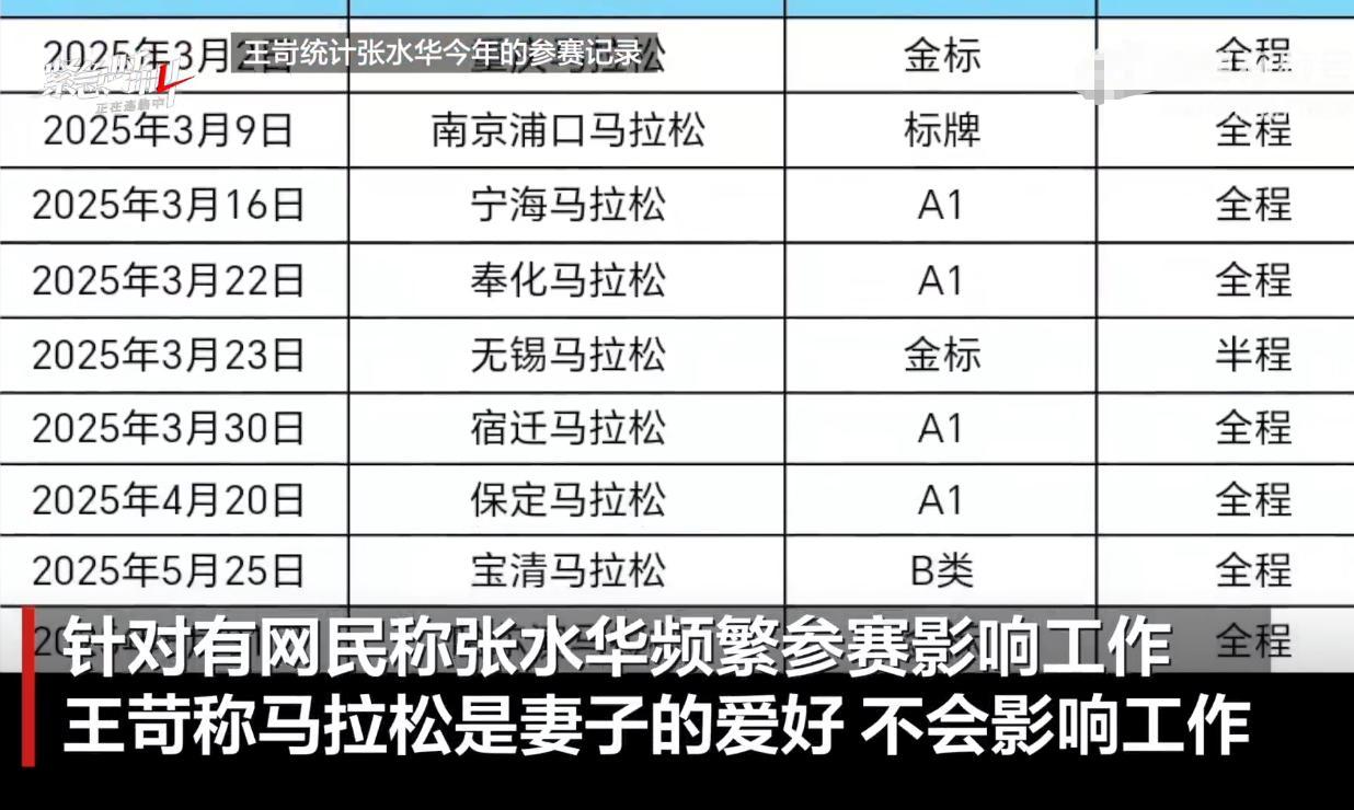 但张水华的逻辑显然不同,她似乎认为,荣誉可以兑换特权,我们不妨量化一下这份隐形成本,她参赛频率极高,接近每月一场,地域跨度极大,某年3月甚至跑了四场。