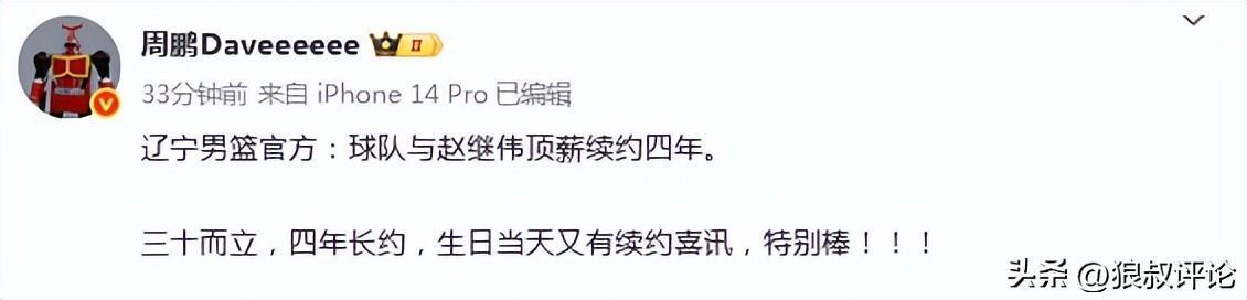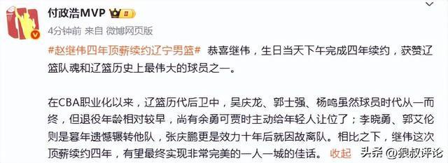 也有不少球迷送出祝福,期待赵继伟继续稳定的表现,帮助辽宁男篮继续创造优势。